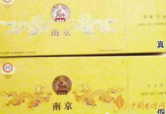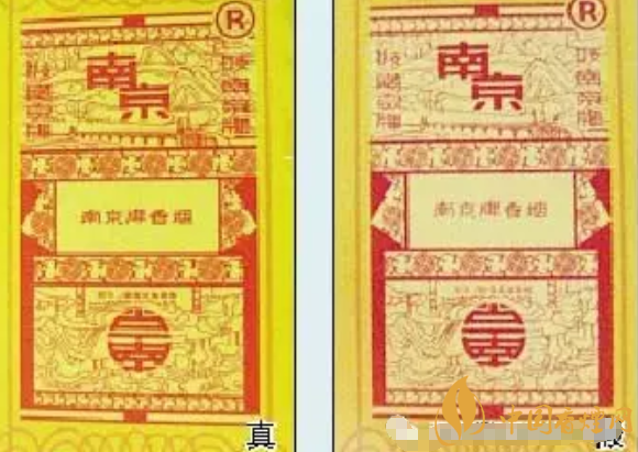 真煙條盒側(cè)面、小盒底部的老南京注冊商標(biāo)圖案,紅色以外的底色部分發(fā)黃;假煙的老南京注冊商標(biāo)圖案發(fā)白,圖案模糊。#p#副標(biāo)題#e#