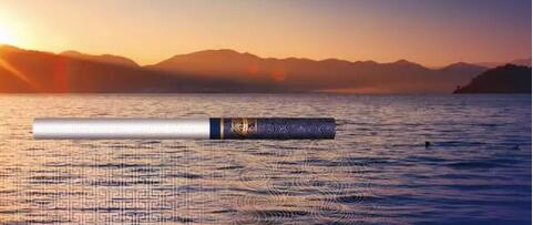 取出一支煙來仔細(xì)觀賞,卻不似包裝那般低調(diào)。湛藍(lán)色的煙嘴搭配鎏金波水浪紋,看起來華貴又不失穩(wěn)健,原來在低調(diào)的包裝之下還有這般威嚴(yán)所在。這種創(chuàng)意靈感來自云南的著名景觀撫仙湖。每到夕陽西下,金黃色的陽光灑滿湛藍(lán)色的湖面,波光粼粼之下魚龍?zhí)S,無限風(fēng)光盡在此湖。