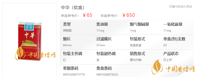中華細(xì)支多少錢一包 中華細(xì)支硬盒多少錢一包