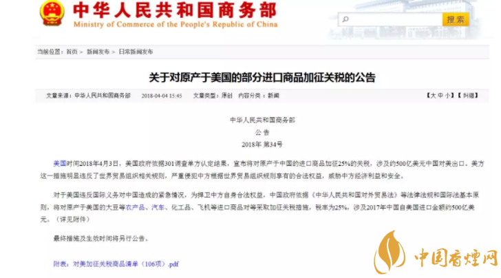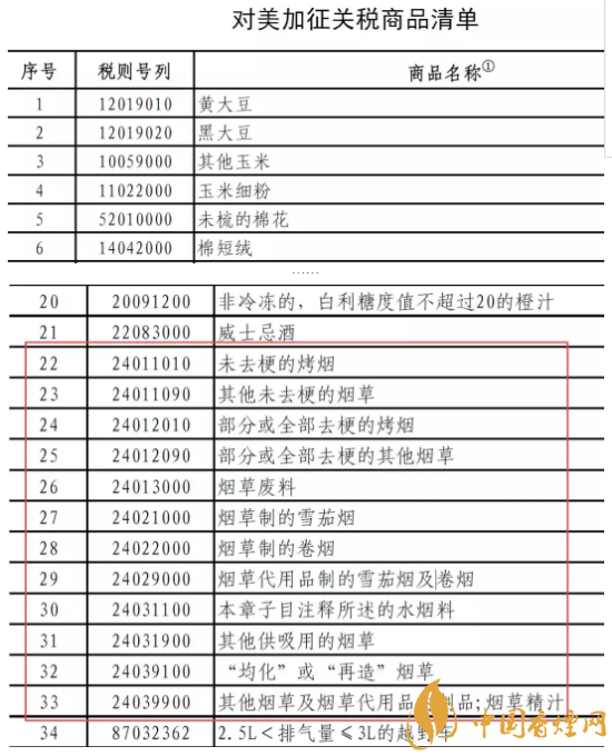 2018中美貿(mào)易戰(zhàn)最新消息 煙草行業(yè)對美加稅商品清單(12種)