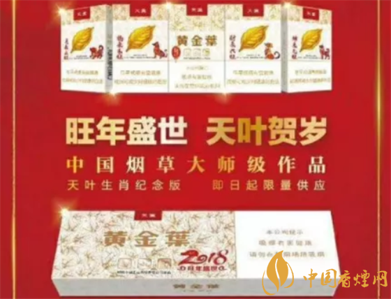 有中國(guó)奢侈品香煙之稱的黃金葉香煙推出了2018年賀歲版天葉,全稱:黃金葉天葉(旺年盛世)狗年生肖紀(jì)念版或者叫2018旺年盛世。煙還是一樣的煙,只是包裝增添了點(diǎn)喜慶特色。