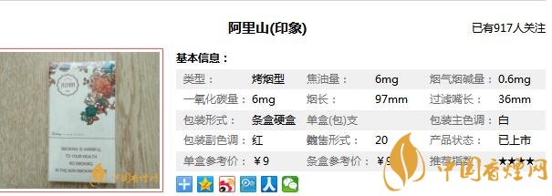 阿里山香煙參數(shù)信息