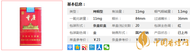 三、天子重慶紅香煙參數(shù)