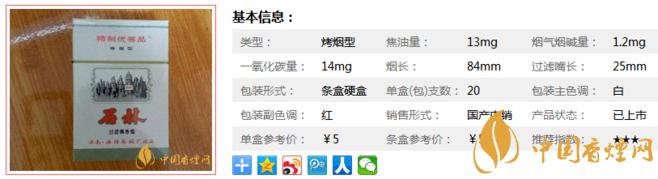 三、石林白香煙參數(shù)