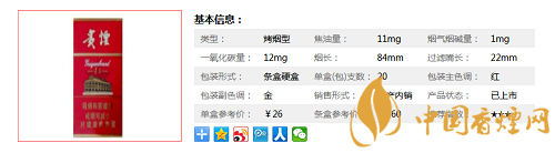 類型 :烤煙型 焦油量 :11mg 煙氣煙堿量 :1mg 一氧化碳量 :12mg