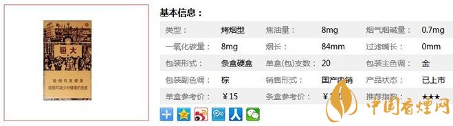 三、紅雙喜津門恒大香煙參數(shù)