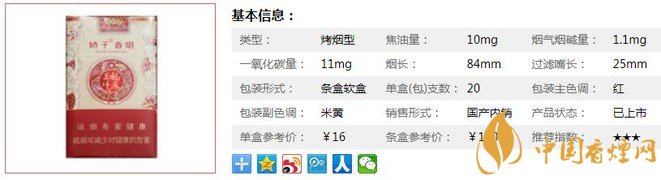 類型 :烤煙型 焦油量 :10mg 煙氣煙堿量 :1.1mg 一氧化碳量 :11mg
