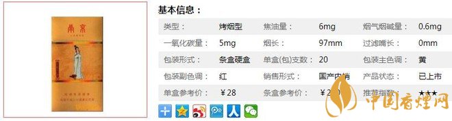 三、南京金陵十二釵烤煙香煙參數(shù)
