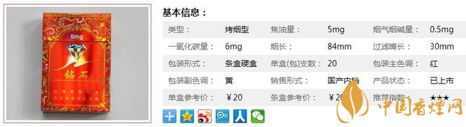 三、鉆石吉祥香煙參數(shù)