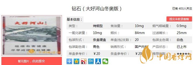 一、鉆石大好河山冬奧版香煙價(jià)格