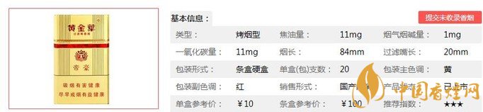 三、黃金葉硬帝豪香煙參數(shù)