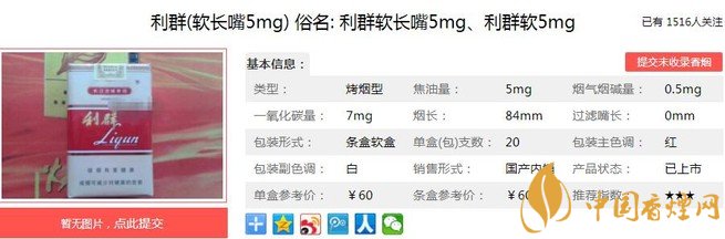 一、利群軟長嘴5mg香煙價格