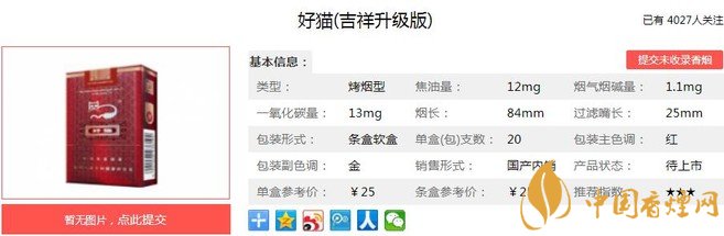 一、好貓吉祥升級(jí)版香煙價(jià)格