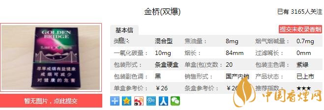 一、金橋雙爆香煙價(jià)格