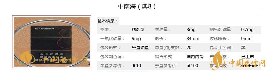 中南海(典8)多少錢一包?中南海(典8)抽起來口感如何?6月1日,中南海香煙一新品上市,中南海(典8),對于這款想上市的香煙,許多煙民還不熟悉,那么這款中南海(典8)多少錢一包?中南海(典8)抽起來口感如何?下面小編將為大家從中南海(典8)香煙價格,包裝以及口感三個方面介紹這款新煙。