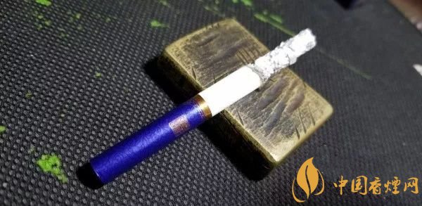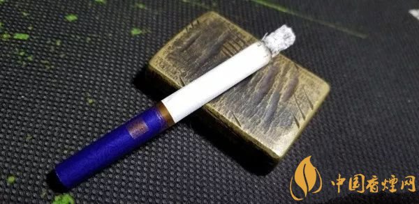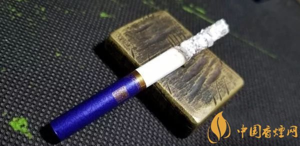 拉出,光面藍紫色的水松紙,帶有深色的云紋,與煙盒的顏色和紋飾相同。濾嘴底部,一圈粗粗的金色圓環(huán),其上,是金色的水波紋路。一面是真龍兩字,另一面是一方“南海龍王”的印章。整體,顯得典雅內(nèi)斂。