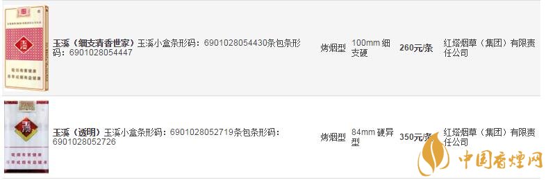 玉溪煙價(jià)格表和圖片大全