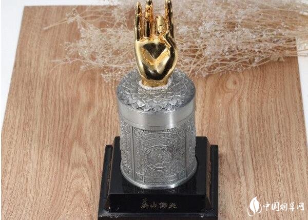 泰山—佛光光錫罐。"史上最貴的煙”之一,錫罐包裝,上面有金光燦燦的佛手,還很刺眼,相信99%的人都沒有見過這樣的香煙盒子吧,誰能想到這個東東是一盒煙,打破煙草外包裝的傳統(tǒng)定義啊,光看這個盒子就知道不是拿在手里抽的,這得有多奢侈啊!市場參考價2000元/條