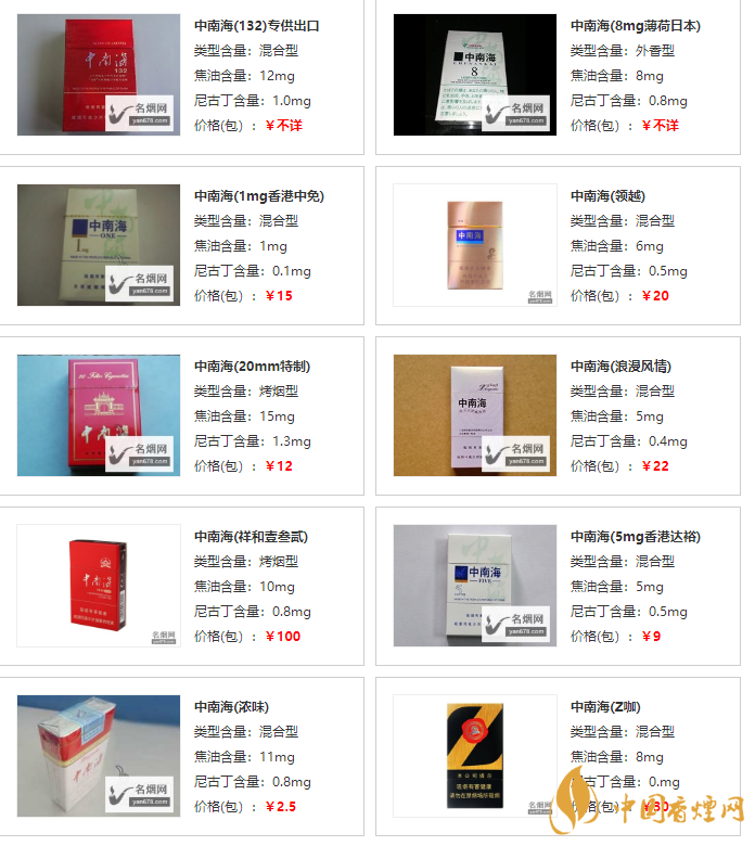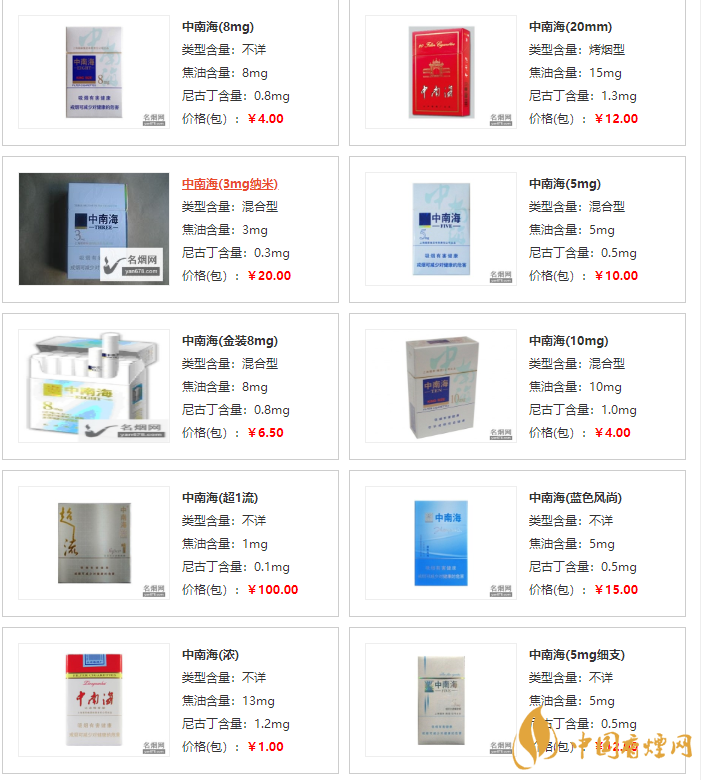中南海香煙價(jià)格表