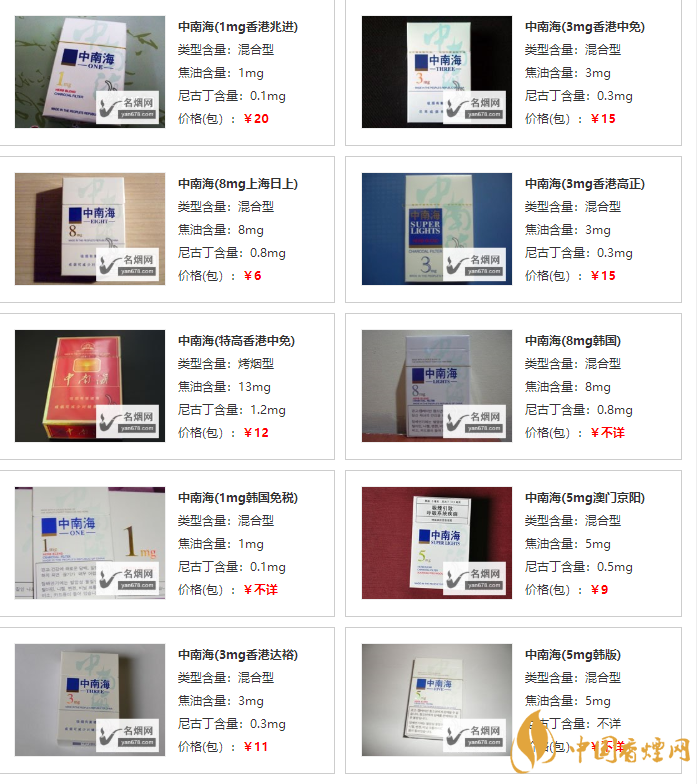 中南海香煙多少錢一包?