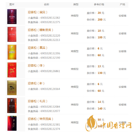 2020迎客松香煙最新價(jià)格表圖