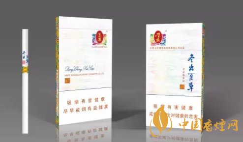 冬蟲夏草煙和潤系列,價格600元每條。中外觀素雅,設計以白色為主基調,搭配亮藍的行草字體“冬蟲夏草”顯得格外素雅脫俗。