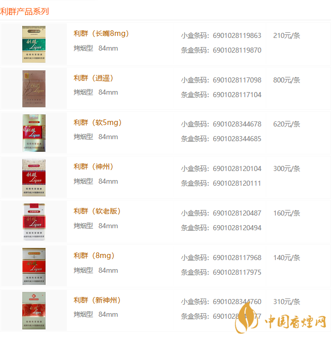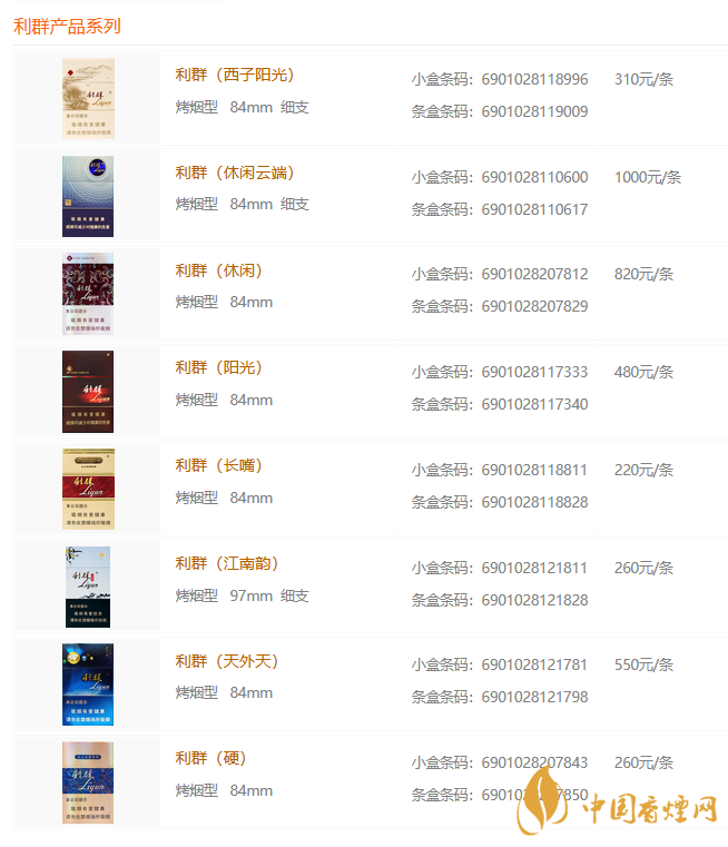 2021利群香煙價格表圖大全