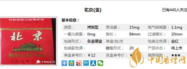 北京卷煙廠始建于1970年,位于朝陽區(qū)管莊西里42號(hào),是一個(gè)占地面積十一萬二千平方米、建筑面積九萬余平方米,工藝布局合理、管理科學(xué)、技術(shù)設(shè)備先進(jìn)、自動(dòng)化水平較高的中國中型卷煙工業(yè)企業(yè),在對北京喜慶香煙價(jià)格表分析之前,先來看看北京喜慶煙多少錢一包,北京喜慶香煙也就是現(xiàn)在北京(金),它的售價(jià)為12元/包。