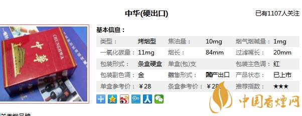 煙界的中華,有如白酒界的茅臺(tái),其歷史積淀和人文底蘊(yùn)極其豐厚。中華香煙執(zhí)中國(guó)煙草之牛耳數(shù)載。數(shù)十年前,60元的軟中和40元的硬中,價(jià)格遠(yuǎn)遠(yuǎn)高于其它各省的煙草品牌,令眾煙望塵莫及,我們知道了庫(kù)克中華是什么煙后,出口版的中華的價(jià)格也會(huì)比內(nèi)銷版的價(jià)格低,那么這款庫(kù)克中華的零售參考價(jià)為28元/包。
