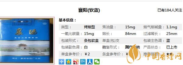 襄陽牌香煙參數信息