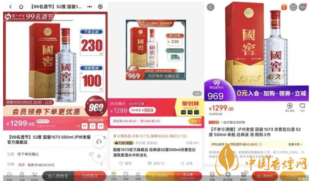 事實(shí)上,由于茅臺價(jià)格持續(xù)拉高,從而為五糧液、瀘州老窖等一線酒企的高端產(chǎn)品讓出價(jià)格調(diào)整空間。但細(xì)觀消費(fèi)市場,國窖1573的價(jià)格并沒有完全突破千元。北京商報(bào)記者發(fā)現(xiàn),52度500ml國窖1573經(jīng)典裝官方旗艦店原價(jià)1499元/瓶,活動售價(jià)1299元/瓶。反觀其他電商平臺,該產(chǎn)品活動售價(jià)大多在1000元左右。其中,天貓旗艦店此前售價(jià)為1299元,活動售價(jià)僅969元;1919平臺此前售價(jià)為1399元,活動售價(jià)999元;酒仙網(wǎng)、蘇寧易購等活動售價(jià)為909元和969元。
