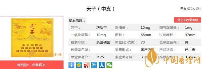 三、天子中支香煙參數(shù)