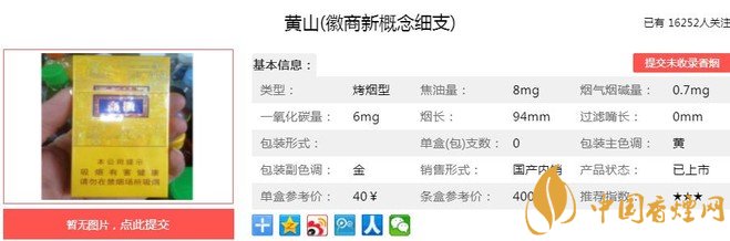 三、黃山徽商新概念細(xì)支香煙參數(shù)