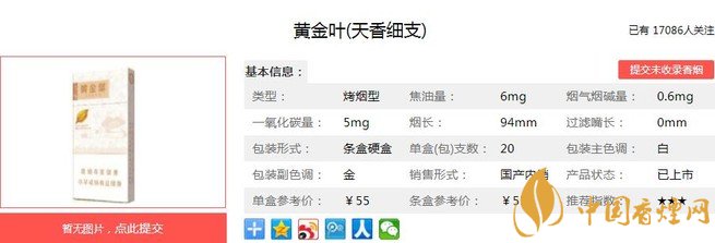 三、黃金葉天香細(xì)支香煙參數(shù)