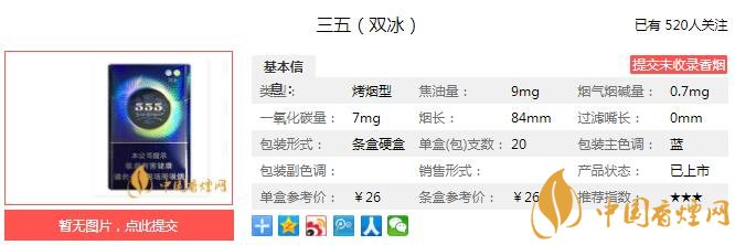 三、三五雙冰香煙參數(shù)