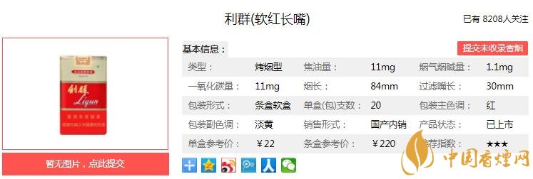 利群軟紅長(zhǎng)嘴煙支長(zhǎng)84mm,過(guò)濾嘴長(zhǎng)30mm。經(jīng)測(cè)定,焦油和煙堿的比值保持在10∶1左右的合理范圍,且焦油量進(jìn)一步降低,煙氣更加柔和細(xì)膩。水松紙采用柔和細(xì)膩的珠光水松紙,并在下方燙金印刷牌號(hào),使煙支外觀更趨合理、協(xié)調(diào)。下面我們一起來(lái)看利群軟紅長(zhǎng)嘴的參數(shù)信息:焦油量:11mg 煙堿量:1.1mg 一氧化碳量:11mg