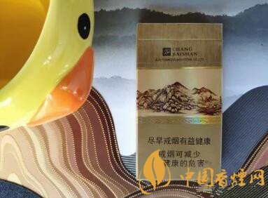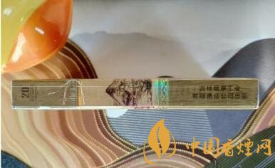 濾嘴與煙支以一條鐳射的窄條環(huán)繞,每支煙支的濾嘴上都印著長(zhǎng)白山及山水圖,還有與煙盒正面同樣的詩句。