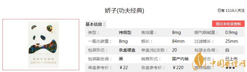 二、嬌子功夫經(jīng)典香煙價(jià)格參數(shù)
