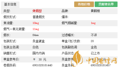金嘴xgrq多少錢一包 黃鶴樓xgrq香煙測評