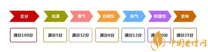 煙草行業(yè)對于成品卷煙明確的評價標準是百分制的感官評吸國標賦值法打分,質(zhì)量評價指標由光澤、香氣、雜氣、刺激性、余味、協(xié)調(diào)6項指標組成,根據(jù)眼觀手觸吸食掌握的性狀打分,分值越高代表其品質(zhì)越好。