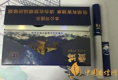 我們在說云煙雪域怎么樣的時候,它的外觀也是非常有特色的。云煙雪域整體配色為藏青色,首先進入眼簾的便是一座雪山聳立云端之上,帶有一些藏文色彩的雪域兩字被印在煙盒左上角,下面連帶兩排小字:千山之宗,夢幻雪域,令人心向神往,背面的圖案則是一眾群山,中間像是一個畫框,整體感覺非常新穎。