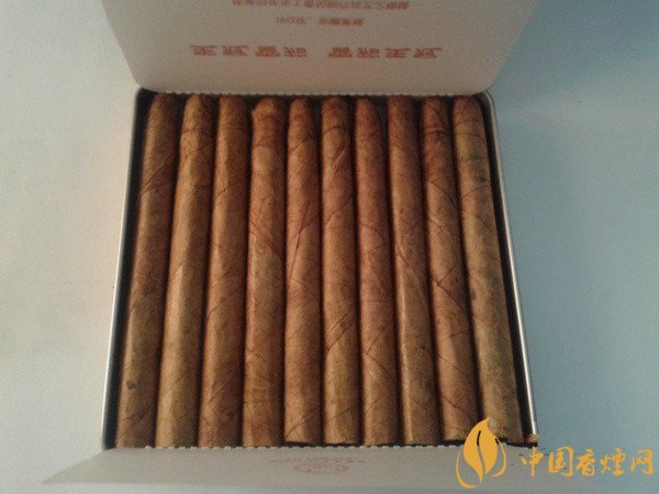 煙長(zhǎng):80mm 過(guò)濾嘴長(zhǎng):25mm 包裝形式:鐵盒裝 單盒(包)支數(shù):10