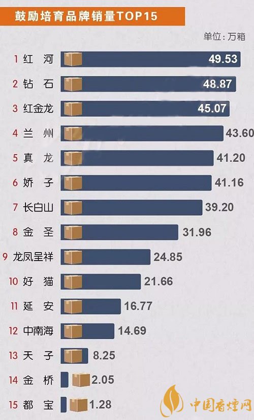 鼓勵(lì)培育香煙品牌銷量中,紅河香煙居第一位,年輕品牌鉆石香煙以微弱差距屈居第二,第三名紅金龍緊隨其后。蘭州、真龍、嬌子、長(zhǎng)白山、金圣、龍鳳呈祥、好貓、延安、中南海、天子、金橋、都寶分別為4-15名。