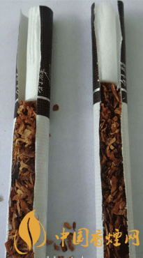 煙支降焦工藝差異比對(duì):真品煙支采用34mm長(zhǎng)度的聯(lián)合效益通風(fēng)槽濾嘴,有效降低焦油和一氧化碳量,又充分保留香氣;假煙煙支采用普通單一濾嘴棒,其濾嘴棒長(zhǎng)度較短,無(wú)法達(dá)降低焦油和一氧化碳量理化數(shù)值效果。