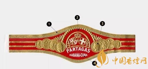 帕塔加斯的茄標(biāo)以大紅底色和金色浮雕裝飾為主,字體部分采用了白色??雌饋韽?fù)雜的浮雕效果,細節(jié)就成了辨別真?zhèn)蔚暮诵模?/p>