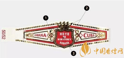 標(biāo)準的好友茄標(biāo)以白色為底色,茄標(biāo)中間是搶眼的紅色盾牌,盾牌中間印有HOYO DE MONTERREY的品牌名,產(chǎn)地名HABANA和CUBA印在盾牌兩側(cè)。