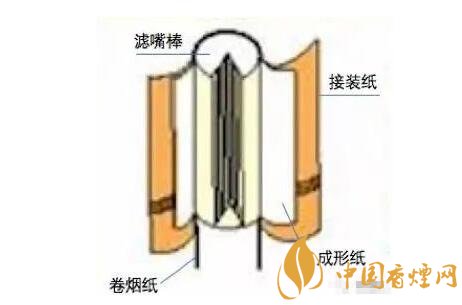 空腔濾嘴:空腔濾嘴是屬于二元復(fù)合濾嘴的一種,二元復(fù)合濾嘴通常是一段濾材為醋酸纖維,另一段為皺紋紙或生產(chǎn)過程中摻入添加劑(如活性炭)的醋酸纖維??涨粸V嘴是屬于后端為皺紋紙的那種,因為后端為中空,為了不使其塌陷,而醋酸纖維太軟,所以利用皺紋紙做成中空型。因其有一段規(guī)則的空腔, 形成一個低壓通道,抽吸時吸阻小, 能夠顯著提高對煙氣中焦油的過濾效率,有效地減少焦油和一氧化碳的釋放量。