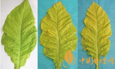 煙葉達(dá)到成熟時(shí),葉面的綠色逐漸消退,黃色程度增加,稱為“落黃”。下部煙葉落黃成熟,葉尖和葉邊緣為黃色,整個(gè)葉面為綠黃色。中上部葉或比較厚的葉片成熟時(shí),葉面為淺黃至淡黃色,有黃色至黃白色成熟斑,葉尖和葉緣為黃白色。