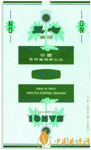 1983年昆明卷煙廠出品。主、副圖為綠色三七植株,商標(biāo)簡(jiǎn)捷、具像,主題醒目。三七為云南省著名且地道的中藥材特產(chǎn),盛產(chǎn)于滇東文山州地區(qū),其歷史悠久、產(chǎn)量大、質(zhì)量好,習(xí)稱“文三七”、“田七”。