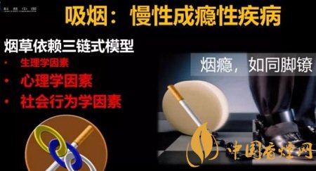 但是煙草成癮不是單單只有生理學(xué)因素,不然,中國(guó)就不會(huì)有3億吸煙者,不會(huì)十年吸煙率幾乎沒(méi)有變化。實(shí)際上,在戒煙的過(guò)程中,比克服生理學(xué)因素更難的是心理學(xué)因素和社會(huì)行為學(xué)因素。煙癮如同腳鐐,拴在人身上很難擺脫。